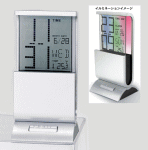 置き掛け両用タイプ。 スタンド付き。  25cmx23cmと大型温湿度計で見やすく、壁掛けに最適。